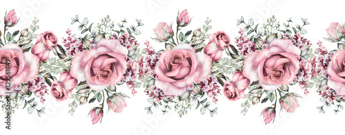 Seamless striped pink floral pattern.
