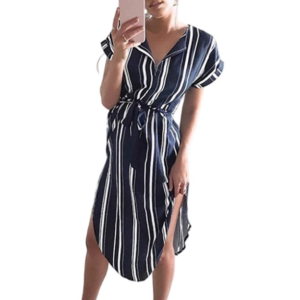 Womens Dresses Summer Casual Floral Geometric Pattern Short Sleeve : Temofon Temofon Women S Dresses Summer Floral Geometric Pattern Short Sleeve Midi V Neck Casual Dress With Belt Striped Blue S Walmart Com Walmart Com : Show your new hot look in our affordable designer fashion dresses with great quality;